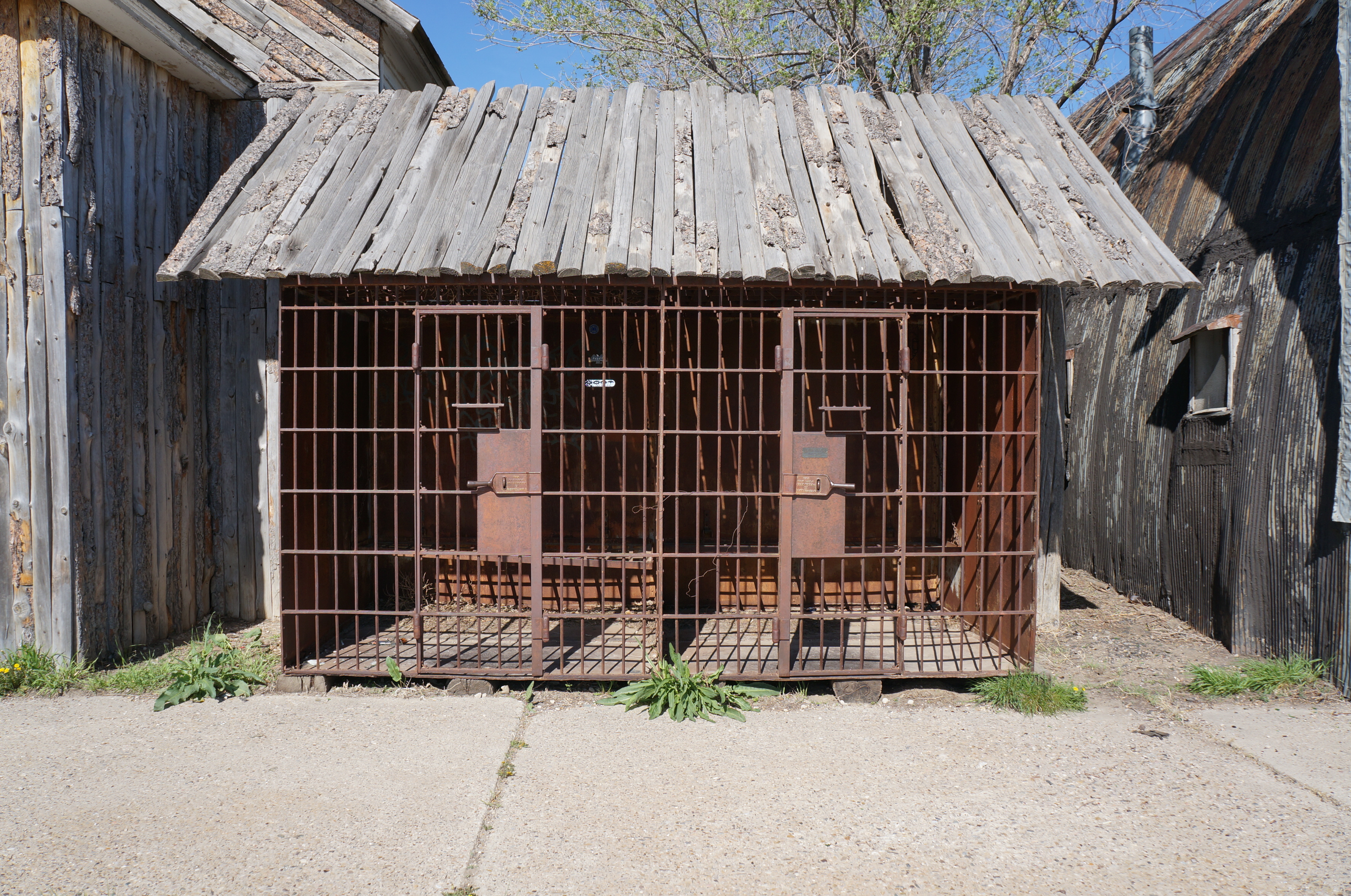 On our way toward Yellowstone, Ally and I stopped there and had a lot of fun creeping around the squat-roofed, stone jailhouse and snapping pictures of the saloon, which had strung across its roof many strands of sun-bleached animal skulls, coils of barbed wire, and a sign that, for years, had read “No Indians Allowed,” until someone finally got enough sense to climb up there and paint over the “No.” Next to the saloon was an open-air cell with a couple of rusty bed frames. I bet that place saw its share of soul-splitting headaches: