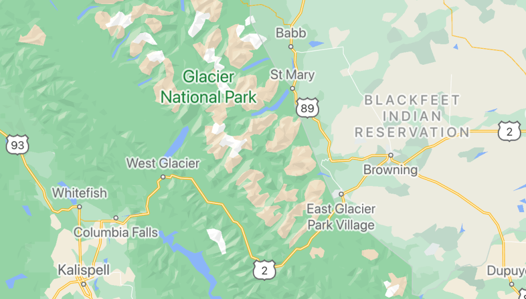 I took the Empire Builder from Minneapolis to East Glacier Park Village, where I stayed for a night and then used Blackfeet Public Transit to get to Browning, where I also stayed for a night. From there, I took Blackfeet Public Transit again from Browning to the Saint Mary’s Visitor Center, where I bought some overpriced bear spray and then caught the shuttle into the park. In the morning haze of the Hay Creek Wildfire, I hopped on the bus without knowing much about where I was going, and my cell phone service was not good enough to review which campgrounds were and were not open this year. (Sidebar: having travelled cross-country a few times previously as a Verizon customer before switching this year to Spectrum, I can assure you that Spectrum’s coverage is not as good as Verizon’s, in spite of the fact that Spectrum uses Verizon’s towers. With Spectrum during this trip, most of my apps were useless outside of major cities when I wasn’t connected to wifi.)