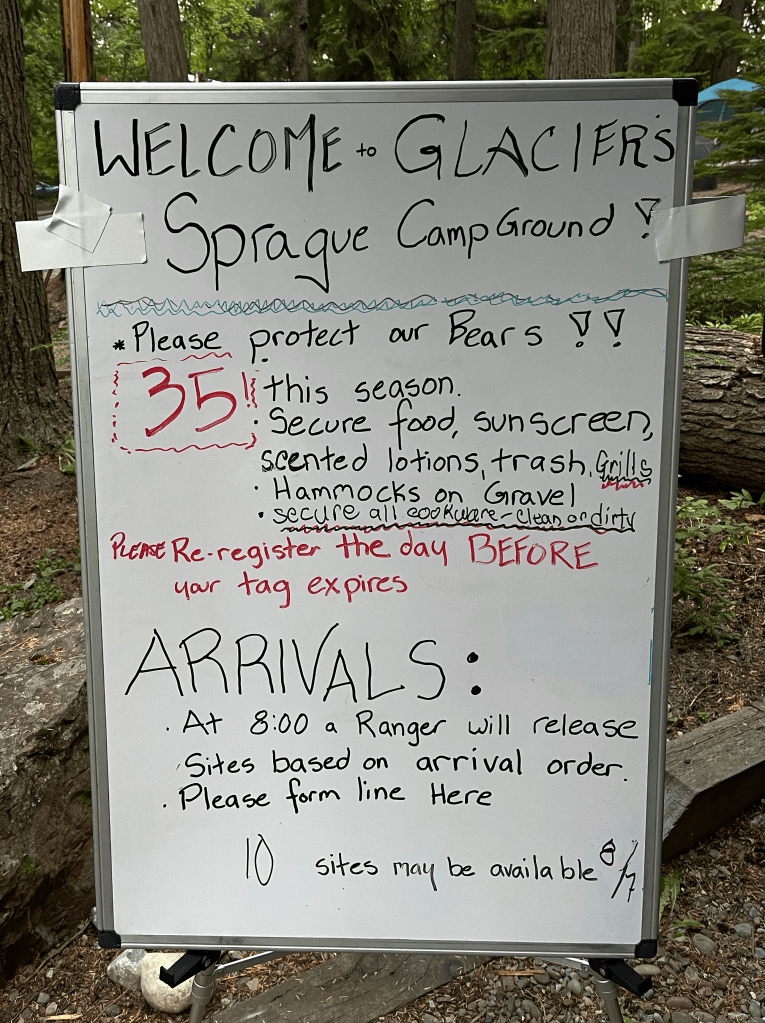 After some research, I found that Glacier has a pretty great shuttle system that travels along Going to the Sun Road. This year’s stops were more limited than usual, and some of the campgrounds were closed–I’m guessing due to staffing shortages stemming from the pandemic–but it appeared to be possible to get around the park without a car. Further complicating matters was the fact that people were flocking to the park in record-setting numbers, and all of the accommodations that could be booked were. Still, I’d read that some of the campgrounds operated on a first come/first served basis, so I figured we would be able to find a place to pitch a tent.