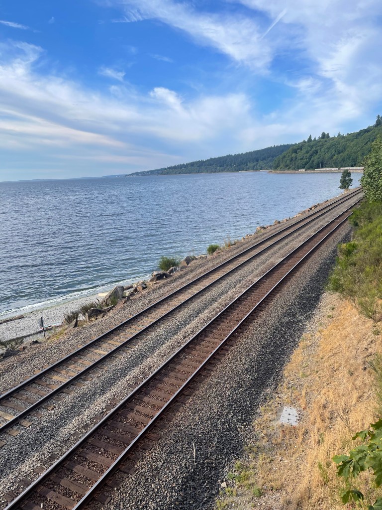 Traveling overnight on the Empire Builder train from West Glacier to Seattle, I slept most of the way. Normally after sunset, I take my inflatable sleeping pad to the observation car and stretch out in the narrow space between the seats and the windows, but on this particular stretch, I was so exhausted from hiking the Highline the day before that I dozed off in my seat. I woke the next morning a little groggy and stiff, but right outside my window, the Puget Sound glittered off into the horizon. It was my first time back in Washington state since my 2017 writing residency at Willapa Bay AiR, and it felt good to be back on the West Coast, though I also felt a bit somber on account of it being the birthday of my older sister, Chelsea, who had died of cancer when I was 16, just before she would have turned 23.